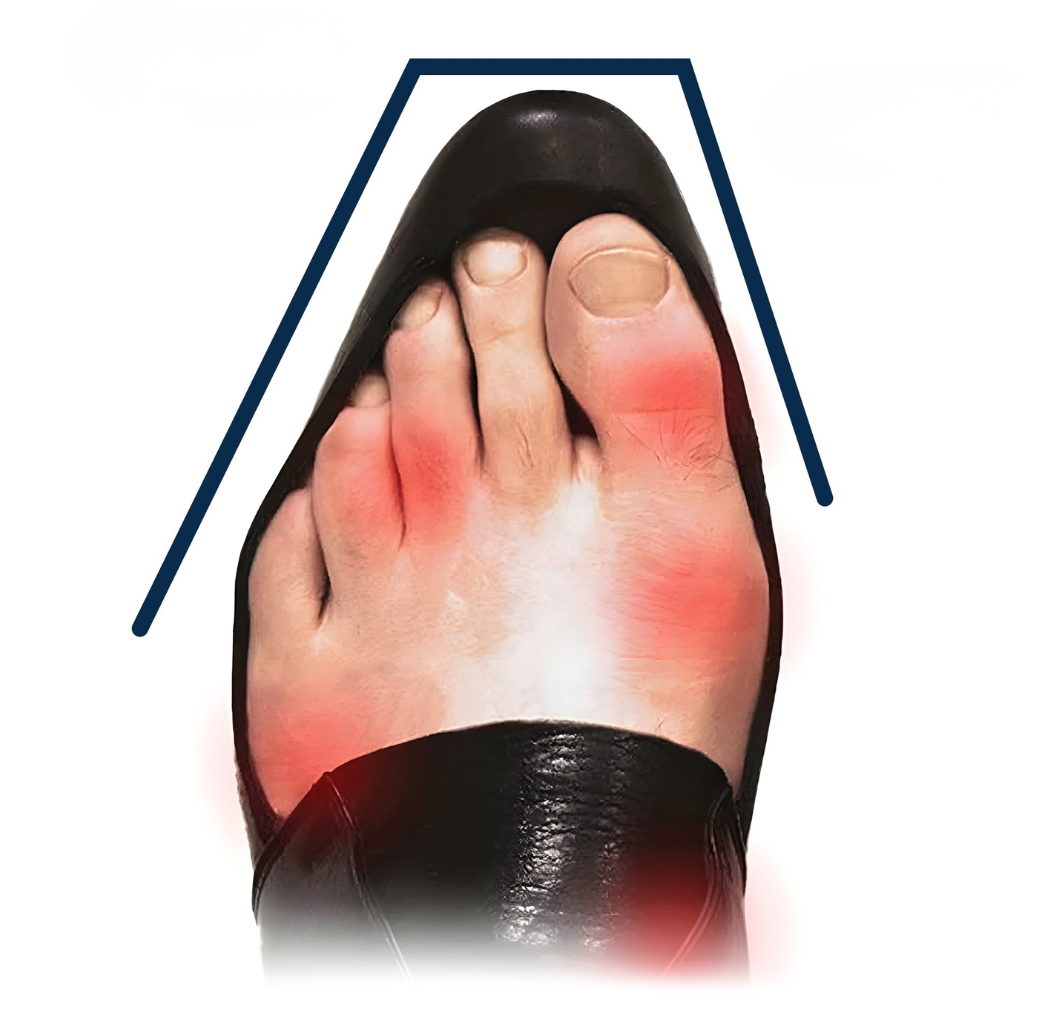 En los zapatos clásicos, la puntera es demasiado estrecha y evita que los dedos se separen de forma natural.