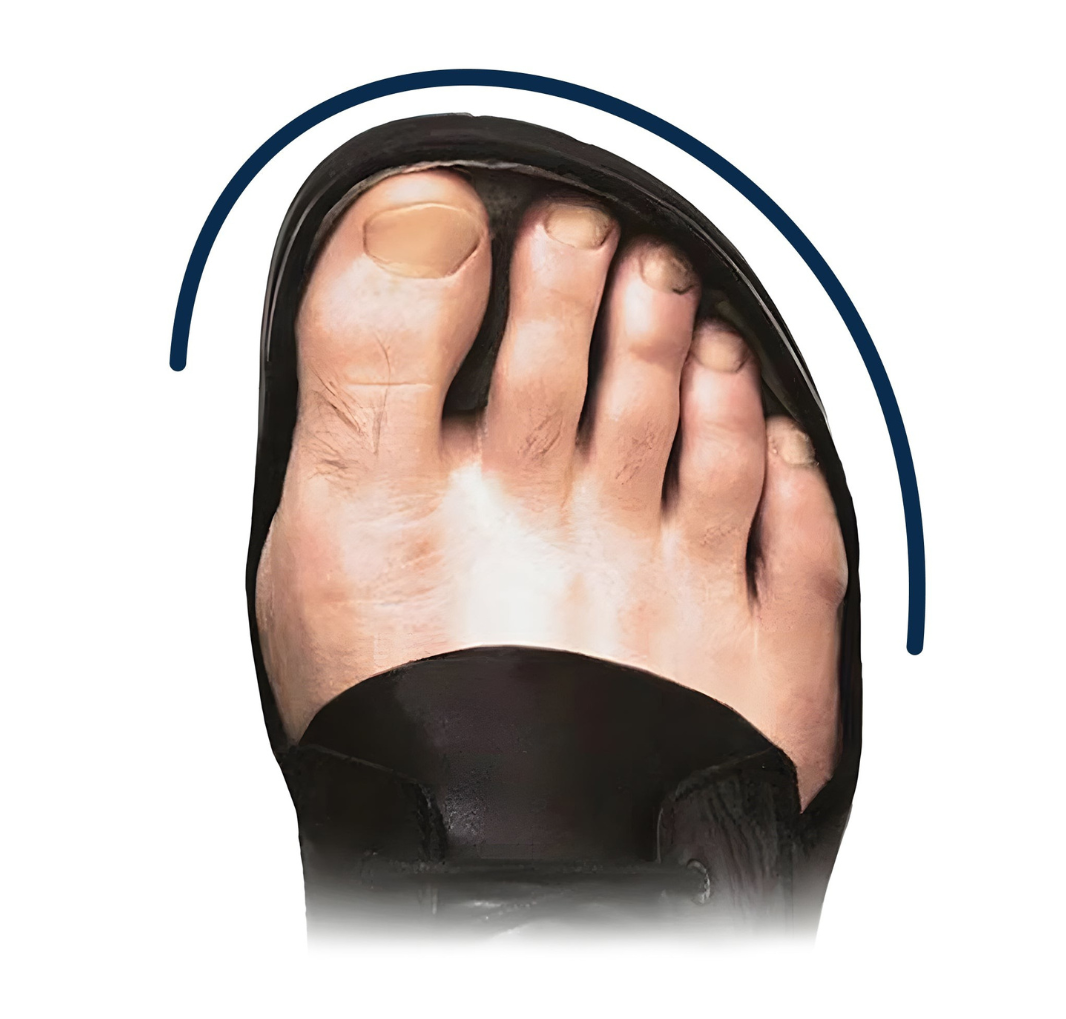 Una puntera ancha permite que los dedos se extiendan en su posición natural y brindan estabilidad y soporte naturales.