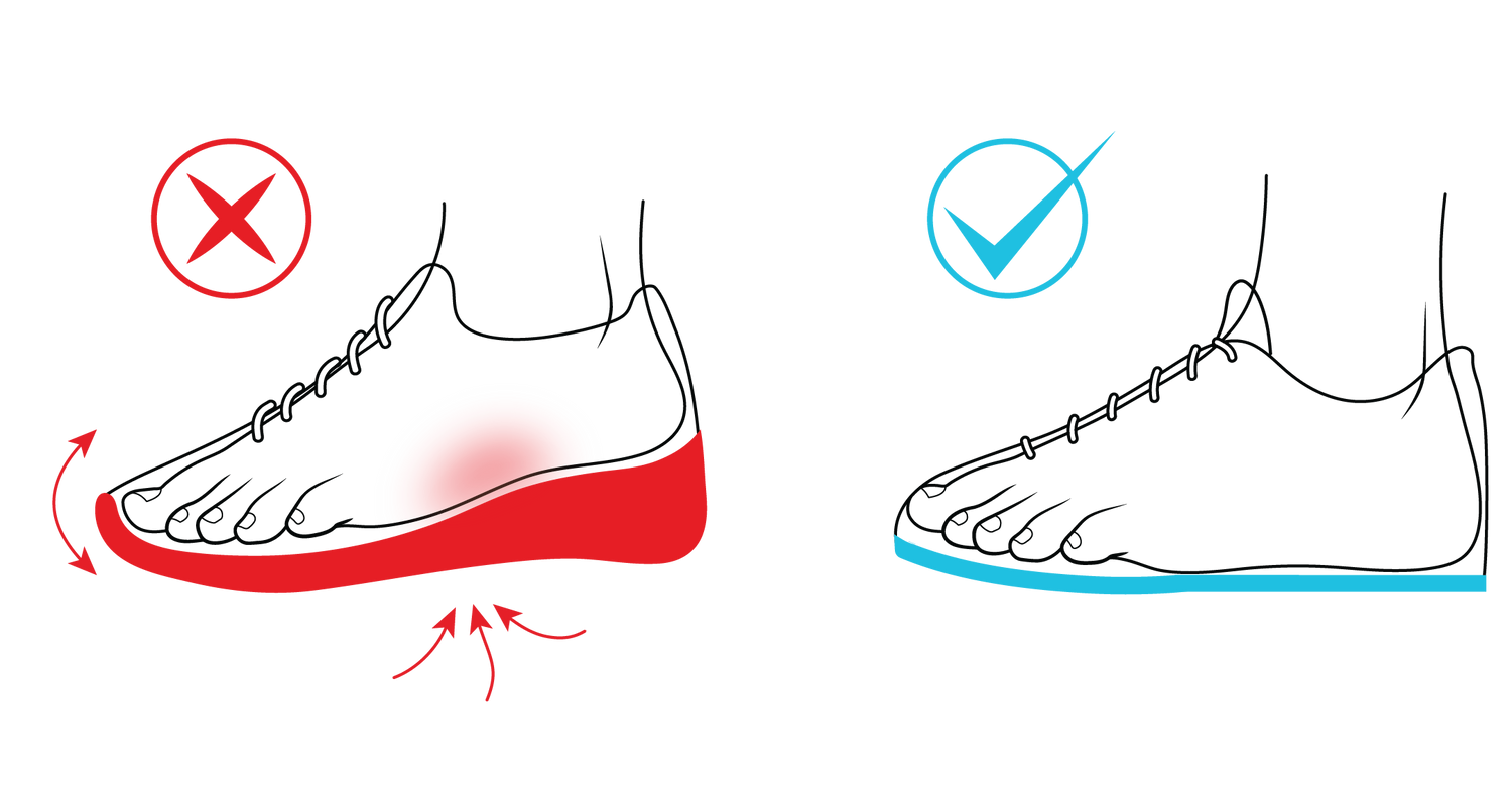 En los zapatos normales, las suelas son demasiado gruesas, lo que provoca inestabilidad y genera tensión adicional sobre los músculos.